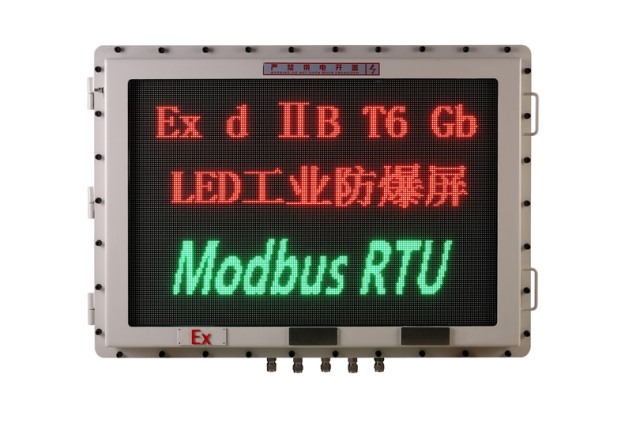 詳細信息 :CLEx系列LED工業(yè)防爆屏,駟駿通顯品牌的一款專業(yè)用于2區(qū)(IIB)爆炸性氣體環(huán)境下危險場所的隔爆型(Ex d)LED工業(yè)防爆屏即LED工業(yè)隔爆屏,此系列中Modbus RTU協(xié)議接口的